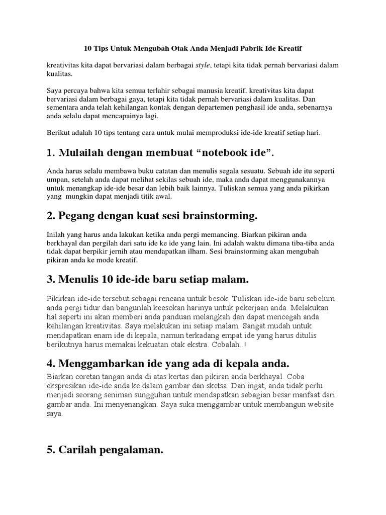 10 Tips Untuk Mengubah Otak Anda Menjadi Pabrik Ide Kreatif
