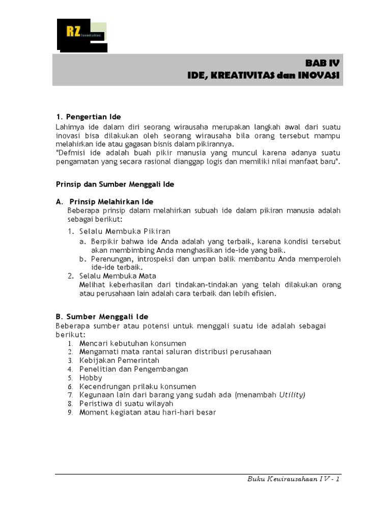 Bab 4 Ide Kreativitas Dan Inovasi Pdf